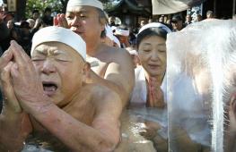 Почти 100 японцев окунулись в ледяную воду ради здоровья